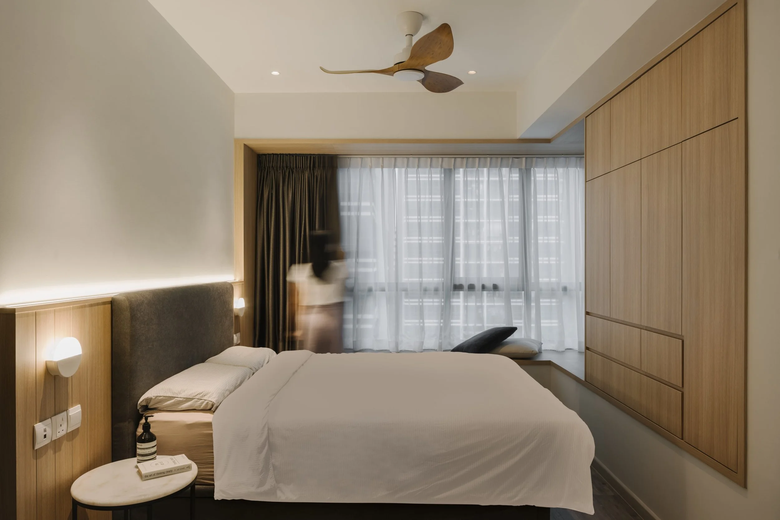 The surrounding interiors were intentionally kept minimal to draw focus to this feature, creating a calm and meditative atmosphere. In the master suite, a custom bay window was crafted to frame the view beyond like a living artwork, introducing a sense of depth and repose. Completed over three months, the residence embodies balance and proportion, offering a timeless expression of contemporary refinement.